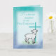 What a special time for your daughter as she makes her First Confession! This sweet card shows a lamb and a cross on pretty teal and purple colours. Send her blessings on her first reconciliation.