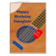 A birthday card for a daughter who loves the guitar. A close-up of a guitar with a plectrum tucked into the strings. On the plectrum are the words 'You Rock'. A birthday card for a musician who loves the guitar.