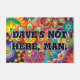 Dave's Not Here, Man. Funny 70s Saying personalised door mat features bursts of brightly coloured psychedelic shapes with a multicolored multilayered text that says, "Dave's not here, Man." Those who remember the Cheech and Chong bit are sure to smile at this. Others will scratch their heads. Either way, it's a great conversation starter.