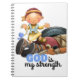 A kids notebook with a cute personalised Bible verse cover. David and Goliath theme. Bible verse "God is my strength" Psalm 46:1. Great for kids drawing or journalling and a fun way to remember Bible verses. Great for Sunday school use or as a gift prize for a themed birthday.