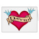 David - Custom Heart Tattoo t-shirts, shirts, apparel & gifts feature a vintage retro tattoo style heart with a banner and a pair of lucky bluebirds, personalised with the name David. Looks great on a wide selection of apparel, shirts, t-shirts & gift items, in an assortment of styles, colours and sizes for men and women, kids and adults. Stickers, magnets, greeting and note cards, hats, tote bags, mugs, travel mugs and more. Tote and market bags and shirt & t-shirt selections available in sustainable and organic cotton options. If you are looking for a certain name, please feel free to post a comment on the comment wall requesting the name, and we'll get to it asap, usually within a day or two.