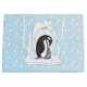Glaciers and ice surround Annie the paisley emperor penguin as she cuddles up with her dad, Davin, to stay warm in the cold Antarctic snow and ice. This sweet and chilly scene is a great way to bring some cute penguins into your life.
