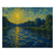 This work captures the tranquil yet dynamic beauty of a river at dawn, reimagined through the expressive lens of Vincent van Gogh’s signature style. The scene is alive with movement — the gentle current shimmers in golden light, while the sky above transitions from deep indigo to warm coral. Swirling brush strokes create a rhythmic harmony between water and sky, evoking the quiet magic of a new day unfolding.