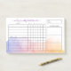 Weekly habit tracker post-its with a watercolor wash the colour of dawn, from purple to golden yellow, in the background. Add your name in a dark purple script. The habit tracker notepad features a handy chart where you can check off each day of the week with up to ten habits. Add the time period by hand. And jot down three weekly goals too! All categories are customisable in case you want to change the wording or even the purpose of the planner.