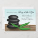 Spa rocks and bamboo leaves on a bamboo table. #spa #bridalshower