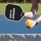 This funny pickleball paddle reads "DAY DINKER" in a bold white text that's set against a black background and highlighted by a yellow pickleball (you can easily change the background colour). Add 2 lines of custom text to personalise - club name, location, player's name, phone number, etc. Or delete. Makes a perfect gift for any pickleballer - dinker or banger (cuz bangers know they should dink more ;-) Both beginners and experienced players alike are sure to get a laugh with this one of a kind paddle.
