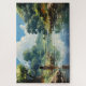 A sparkling river bordered by rocks and wildflowers winds through a green forest. A young girl stands in the water, staring at the spot where the river disappears around the bend. Is she pondering about the world beyond? Does she dream of following the river to its end? We may never know.