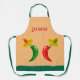This awesome apron features a pair of chilis, a red chilli and a green chilli. They both have black eyes and pink mouths. Each Chilli is wearing a sombrero hat that has a skull of the opposite colour to the chilli on it in celebration of the Mexican Day of the Dead festival, Dia De Los Muertos. The sombrero also contains three flowers with alternating red and green petals representing the flag of Mexico. There is custom text so you can include a name.