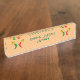 This awesome nameplate for your desk features a pair of chilis, a red chilli and a green chilli. They both have black eyes and pink mouths. Each Chilli is wearing a sombrero hat that has a skull of the opposite colour to the chilli on it in celebration of the Mexican Day of the Dead festival, Dia De Los Muertos. The sombrero also contains three flowers with alternating red and green petals representing the flag of Mexico. There is custom text so you can include a name and any message of your choice.