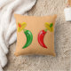 This awesome double sided pillow features a pair of chilis, a red chilli and a green chilli. They both have black eyes and pink mouths. Each Chilli is wearing a sombrero hat that has a skull of the opposite colour to the chilli on it in celebration of the Mexican Day of the Dead festival, Dia De Los Muertos. The sombrero also contains three flowers with alternating red and green petals representing the flag of Mexico. The design is also patterned all over the back so you have 2 looks to choose from.