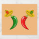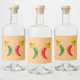 This awesome sheet of liquor bottle labels features a pair of chilis, a red chilli and a green chilli. They both have black eyes and pink mouths. Each Chilli is wearing a sombrero hat that has a skull of the opposite colour to the chilli on it in celebration of the Mexican Day of the Dead festival, Dia De Los Muertos. The sombrero also contains three flowers with alternating red and green petals representing the flag of Mexico.