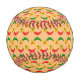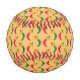 This awesome baseball features a pair of chilis, a red chilli and a green chilli. They both have black eyes and pink mouths. Each Chilli is wearing a sombrero hat that has a skull of the opposite colour to the chilli on it in celebration of the Mexican Day of the Dead festival, Dia De Los Muertos. The sombrero also contains three flowers with alternating red and green petals representing the flag of Mexico.