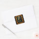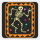 Skeleton puppet for the Mexican Day of the Dead with bright orange lines and confetti.