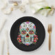 Set of eight 9” paper plates with an image of a Day of the Dead skull decorated with pink flowers and vines, red roses and a cross with four drops of blood on black. The Day of the Dead, or All Souls' Day, is celebrated on November 2 in various European and Latin American countries. In Mexico the period of All Souls' Day festivities is held for several days, including All Saints' Day on November 1. See matching candy jar, espresso cup, mug, square ceramic tile and coasters. See the entire Mexico Plate collection in the HOME section.