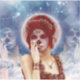 This design features A red themed day of the dead sugar doll with a blue moon and star background.