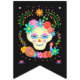 Charming Sugar Skull framed with colourful floral, sweet bread and glowing candle.