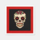 A sugar skull style design for Day of the Dead - Dia De Los Muertos. Skull with hearts and flowers, red roses, on a black and red background.