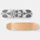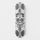 Day of the Dead / "Día de los Muertos" skateboard deck with sugar skull art featuring an elaborated illustration with Aztec / Mexican motifs on black and white.