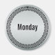 Metallic look grey and black circle graphic for daily organisation reminders for home or office. This organising magnet is for Monday.