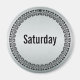 Metallic look circle graphic for daily organisation reminders. This magnet represents Saturday.