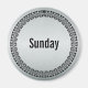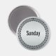 Metallic look circle graphic for daily organisation reminders. This magnet represents Sunday.