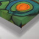 This vibrant artwork depicts a surreal landscape filled with swirling patterns and vibrant colours. The circular motifs create a sense of movement and energy, drawing the viewer's eye through the composition.