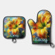 Daylily Daylilies Flower Yellow Teal Personalised Oven Mitt & Pot Holder Set