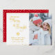 “May your days be merry & bright.” A playful, real gold foil calligraphy script quote, star, and confetti dots against a clean, white background on the left, and the photo of your choice on the right, help you usher in Christmas and New Year. A red background sprinkled with faux gold foil confetti dots is on the back. Feel the warmth and joy of the holiday season whenever you send this trendy and festive personalised holiday real gold foil photo greeting card. Matching and coordinating envelopes, stickers, giftwrap, pillows, housewares, jewellery, and other products are also available in my “Christmas Days Be Merry & Bright” store collection. Send this to someone special!
