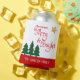 “May your days be merry and bright”. Add some fun to the holiday season whenever you use this festive, whimsical can cooler! A playful illustration of a red handwritten script quote, green trees, and a gold glitter star overlay a clean, white background. Personalise with your family name or other copy overlaying the red band at the bottom. Feel the warmth and joy of the holiday season as you relax with your favourite beverage. This festive, striking set of four coasters is available in a round or square shape. A great finishing touch for your holiday party!