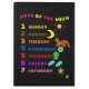 Days of the week with colourful text on black background