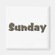 Days of the week - Sunday: a quality magnet labelled as "Sunday" in a style and with a background colour of your choice that can easily be used for example as a memory jogger by sticking your Monday shopping list to the fridge door with it, or used with others in the set for educational use with children in this design by Stronsy. There are other variants in the series including "Months of the Year" and "Numbers"