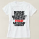 A bold typographic design. The days of the week in bold capital headline letters with Friday in red.