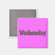 Days of the week - Wednesday: a quality magnet labelled as "Wednesday" in a style and with a background colour of your choice that can easily be used for example as a memory jogger by sticking your Monday shopping list to the fridge door with it, or used with others in the set for educational use with children in this design by Stronsy. There are other variants in the series including "Months of the Year" and "Numbers"