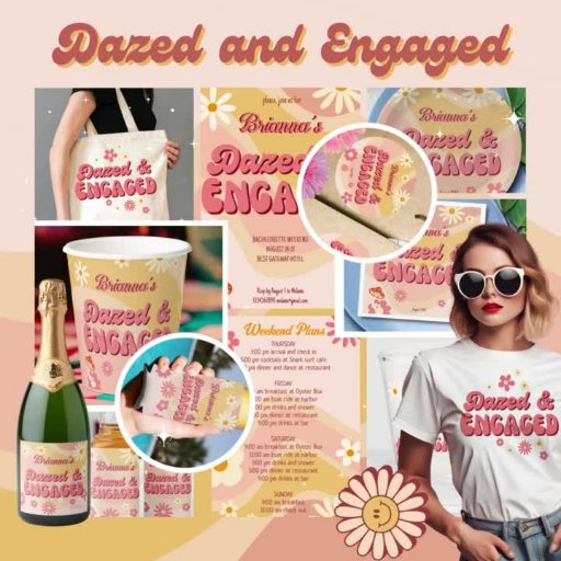 Dazed and engaged groovy retro bachelorette partyDesigned by Ieva Jenciute