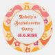 This is custom groovy retro floral bachelorette party custom sticker with very cute retro flowers on abstract groovy waves in pink , orange ,yellow and purple. you can change it and make it yours by using personalise template.