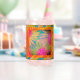 Presented herein is a most vibrant work of art with illuminated colours of pink, green, orange and yellow, making this a delightful abstract.