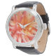 Dahlias are an incredible family of flowers, so many shapes, colours and sizes. The original photograph by MaeFlowers on this Watch shows an amazing flower in full bloom, a sphere of peach coloured petals. The gently tapering cylindrical petals seem to curve outward from the watch. The photo has a very three dimensional look. The black numbers on the watch can be removed if you prefer.