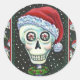 DEAD HEAD SANTA SKULL, CHRISTMAS SKELETON HUMOR CLASSIC ROUND STICKER
