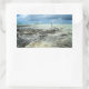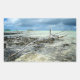 Rectangular photo sticker of a dead tree lying on a black coral reef waiting for decay in the middle of the picture-perfect blue lagoon of a Pacific atoll in the Tahiti archipelago French Polynesia island.