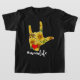 The t-shirt feels and looks great quality, a good thick cotton. It will be a little big for my son, but that means he will be able to wear it and not out grow it too soon. The print was as described on the order when personalised. True size, shape and colour T-shirt- thanks.