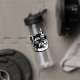 The silly black-and-white graphic on the cat lover design is the classic, sushi-loving, heavy breathing cat meme with pixelated deal-with-it sunglasses. A perfect water bottle gift for introverted internet cat owners who love old-school Internet memes and funny kitty cat mashups. Black and white.