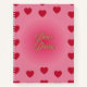 cute pink spiral notebook with red hearts.
