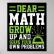 Dear Math Grow Up And Solve Your Own Problems Funn Poster