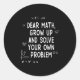 Dear Math Grow Up And Solve Your Own Problems Math Classic Round Sticker