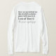 I love this shirt. I had written to the artist asking her if this picture was available on a shirt, and she wrote me back telling me where I could find the shirt. These shirts can be custom made to have a different saying. I loved this saying and went with it. The artist wrote me back later to tell me that she had seen my order go through. How's that for service? Pretty special. It's just as displayed. Perfect!