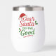 Sip, smile, and celebrate the season with this “Dear Santa, Define Good” Christmas Wine Tumbler! Featuring playful red and green lettering with a Santa hat, holly sprigs, and candy cane underline, this cheeky design perfectly captures the fun side of the holidays — because who really defines “good” after a glass (or two)? 🎅