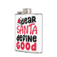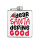 Are you on the hunt for the perfect holiday fashion and home decor item? Look no further! Our 'Dear Santa Define Good' design in red and black with a playful trendy font is just what you need. It's a fun and funny way to get into the holiday spirit and make your loved ones smile. Don't you think it's perfect for this cute flask. Get your hands on this playful design today!