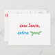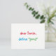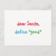 "dear Santa, define "good"" Funny, humourous, fun colourful script / typography, Santa quote/joke, custom, personalised christmas holiday card, with a question for Santa from a cutie pie. The greetings, message, text on the back of the card can all be personalised, made your own. A fun card for your season's greetings / christmas mailings this holiday season.
