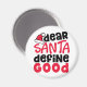 Ready for some holiday humour? Check out this new design that will bring a smile to your face: Dear Santa Define Good! Our fun and playful font in red and black will add a trendy touch to your holiday fashion or home decor. And what's even better? This design is available as a festive magnet - perfect for stuffing stockings and spreading holiday cheer. Get yours today!