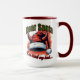 A funny Christmas mug with Santa's hat and Devil's horns.